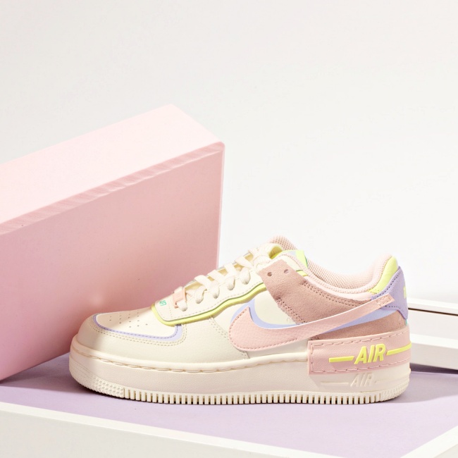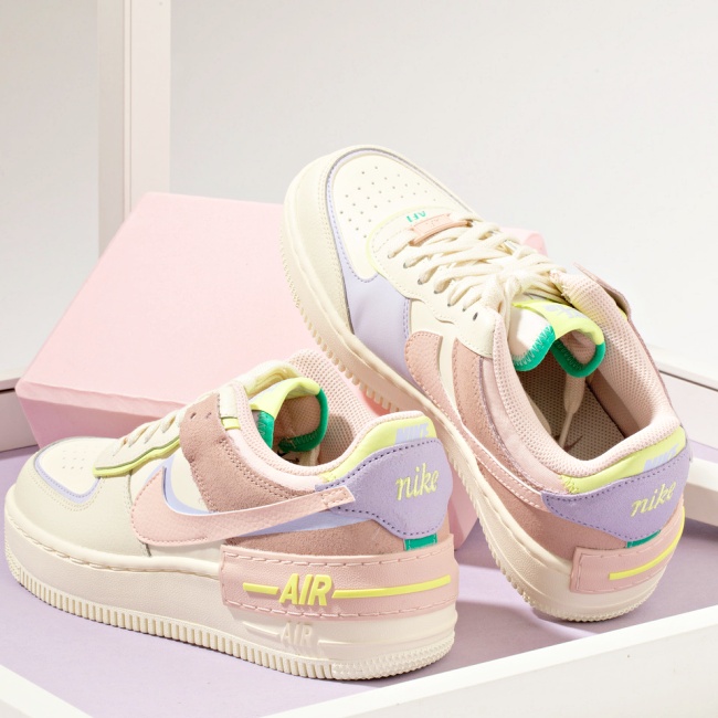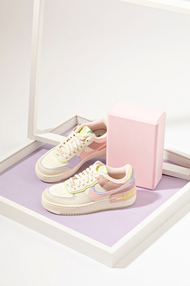 以草莓香草為基底,點綴葡萄、萊姆、抹茶等口味的「AIR FORCE 1」,夢幻粉嫩又可口的外表,光看就甜度爆表!雙重品牌標誌、誇張中底,同時還搭配鞋身加高的層次結構,自帶美腿效果。