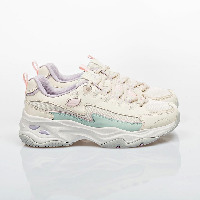 老爹鞋也變成綜合冰淇淋口味!SKECHERS這雙「D'LITES 4.0」用奶油色鞋身、牛奶白大底打造而成,裡面還加了草莓、藍莓、奇異果口味,光看就酸酸甜甜超清爽,增高厚底更是超加分。