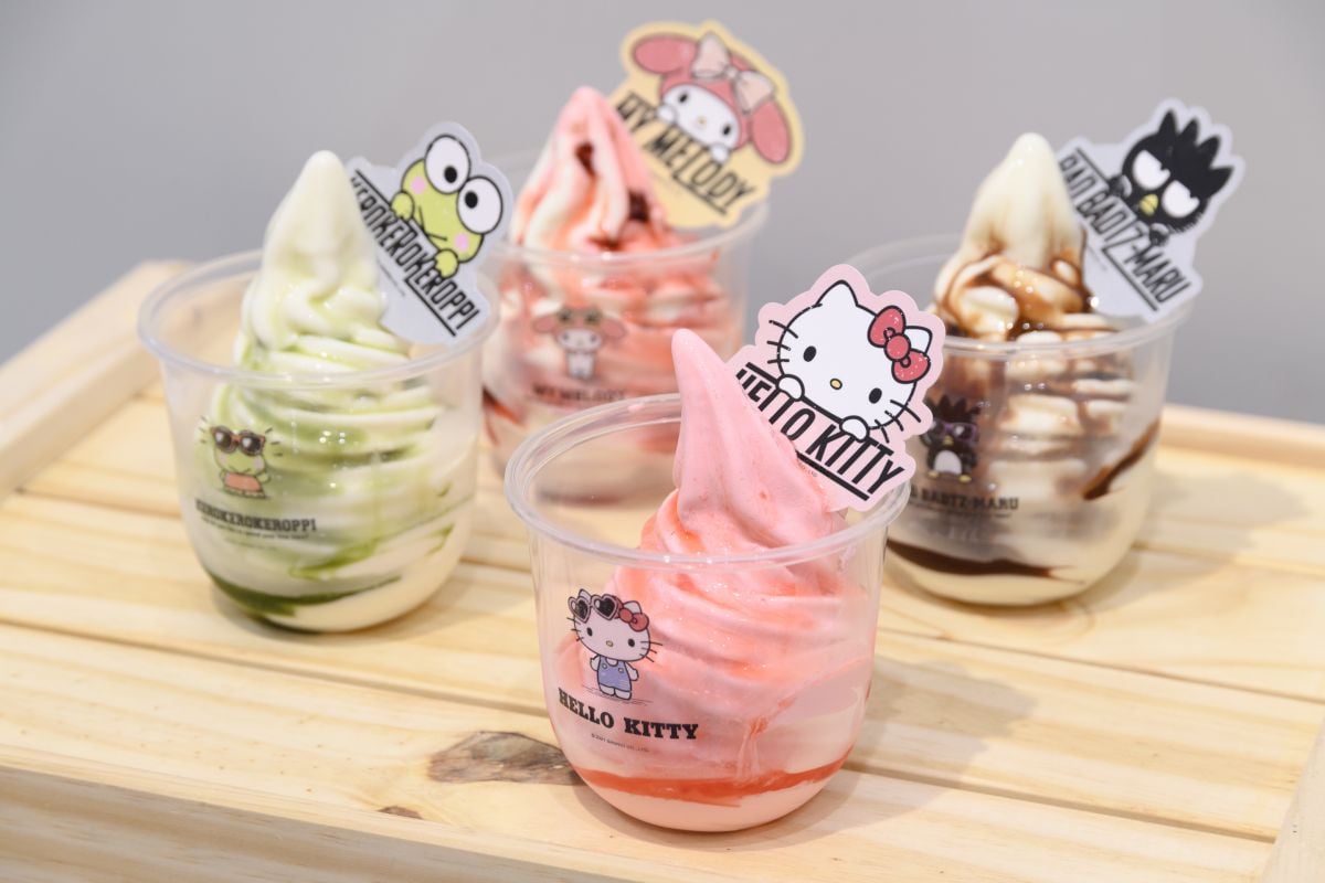 這次「三麗鷗悠閒時光期間限定店」更推出牛奶、草莓兩種口味的冰淇淋及冰淇淋汽水,杯身分別有HELLO KITTY、美樂蒂、酷企鵝、大眼蛙四款可愛圖樣,還會依造各種不同角色撒上限定糖漿,清爽鮮甜又消暑的冰淇淋妞妞們絕對要來一支呀~