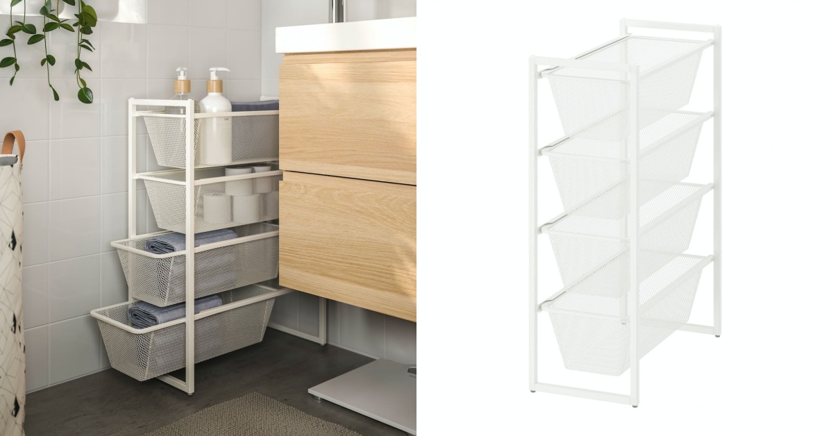 家裡如果有那種不大不小的角落空間最適合這一組!JONAXEL收納組合瘦瘦窄窄的尺寸設計絕對是可以讓大家完美利用這些角落的神隊友,四層的網籃設計就算放在潮濕的浴室也很OK。