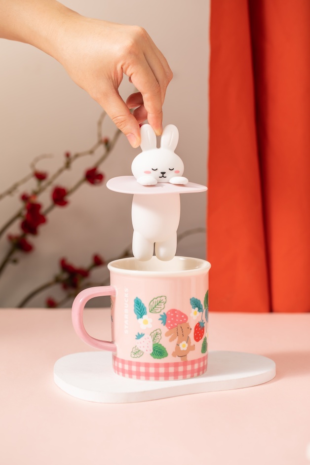 首推馬克杯系列,共有「金兔馬克杯」、「福兔迎祥馬克杯」、「玉兔滿堂馬克杯」、「白兔送喜馬克杯」、「兔年大吉馬克杯」、「揚莓兔氣馬克杯」、和「浴兔生機馬克杯」等,其中白兔送喜馬克杯有兔耳朵的杯蓋兔年大吉馬克杯有兔子造型把手浴兔生機馬克杯居然還有兔爪,有夠可愛!