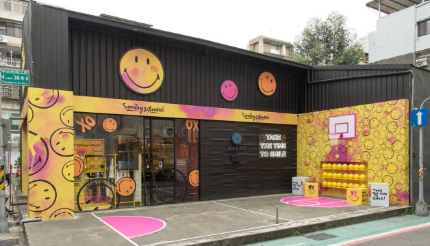 瑪黑和SMILEY聯名,特別選定「台北中山」、「台北敦南」和「台中新光三越中港門市」三間門市,打造SMILEY快閃店和創意裝置,營造SMILEY的樂觀主義精神與微笑力量,其中台北中山門市為規模最大,以噴漆和渲染的形式,架設籃球框和籃球等,展現藝術街頭感,在牆面和窗戶上也有烙印笑臉圖案壁貼,大家準備好殺光相機底片吧!