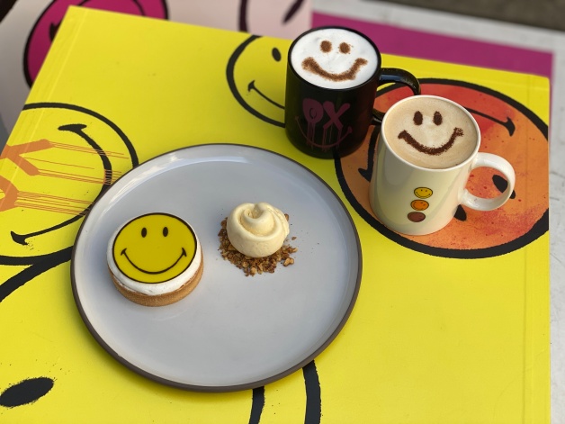 最後則是中山P&T柏林茶館配合SMILEY快閃店,特別推出限定「SMILEY 甜點套餐」,內含「檸檬柚子白巧克力塔」、「香草口味冰淇淋」和「飲品」,白巧克力塔內餡為檸檬奶油餡、柚子白巧克力慕斯,上面放上一片大大的黃色微笑巧克力片,隨餐還有拿鐵咖啡和鍋煮奶茶等選擇,不僅以SMILEY馬克杯盛裝,更綴有SMILEY笑臉,即日起開始供應!