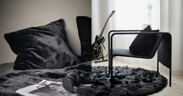 「OBEGRÄNSAD系列靠枕」絨毛的觸感柔軟,妞妞們能夠任意使用在座椅靠背或沙發等角落,在生活空間兼具舒適和極黑美學,妞編輯已經打算入手放在辦公室啦!