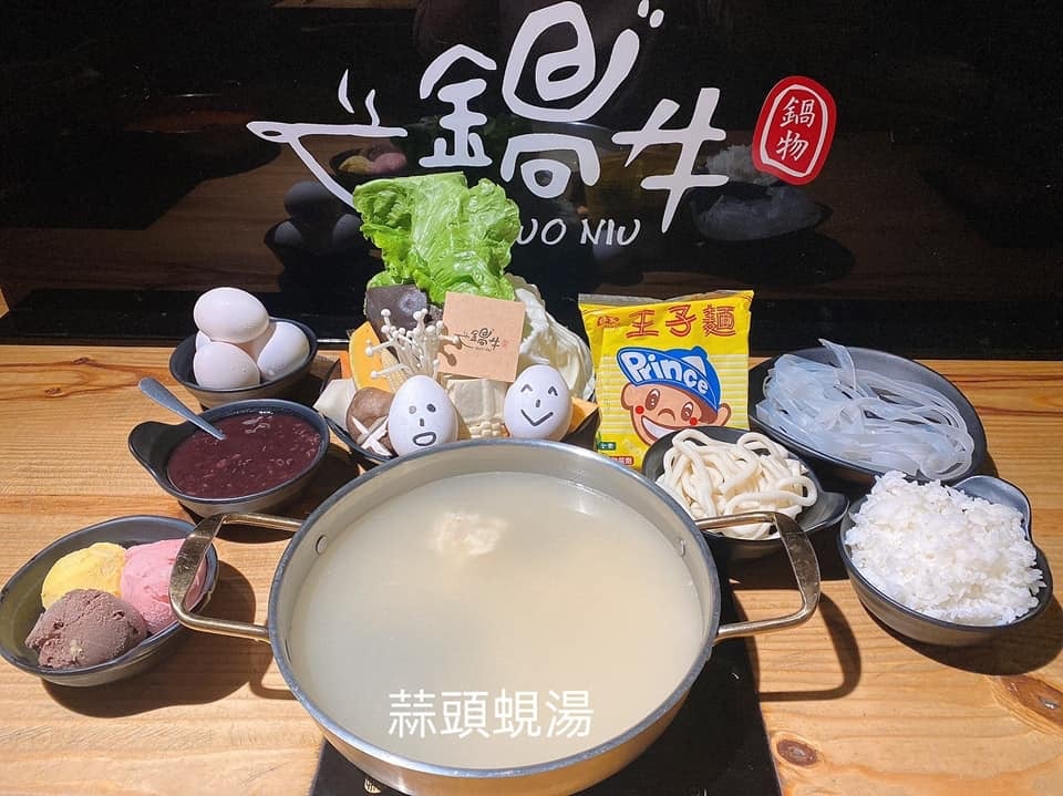 位於民族路芙洛麗飯店對面「鍋牛鍋物」,已經經營超過10年仍在新竹鬧區屹立不搖。他們家的湯頭有分清淡跟重口味,網友們一致狂推「蒜頭蜆湯」,越煮會越香濃,主餐妞編輯私心推薦土雞腿肉鍋,店家強調雞腿是spa過的,肉質的鮮嫩度真的不一樣。