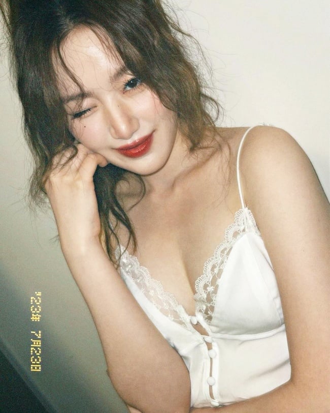 近期常常自稱自己「很性感」的舒華,在近日的個人IG也曬出一組破格自拍,以一頭「泡麵卷+紅唇」入鏡的他,身上居然只穿了細肩帶蕾絲小可愛,胸口前只靠扣子連接,一路若隱弱線開到胸下,刷新尺度的照片立刻引起網友暴動,不只釣出演藝圈好友、工作人員留言:「快穿上衣服」,成員Minnie也著急現身表示:「要守護我們忙內」!