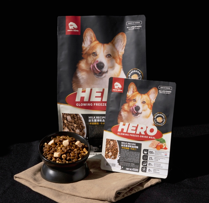 集結獸醫師、食品配方師與一眾貓奴狗僕,針對狗狗飼料市場,HeroMam a首創由澎湃三種料:頂級凍乾原肉塊、獨家益生菌晶球及低油飼料配方組成的的「益生菌凍乾晶球糧」,是市售擁有最高凍乾含量的飼料,三種好料提升進食體驗,不僅解決挑食狗狗,更讓毛孩飲養均衡。