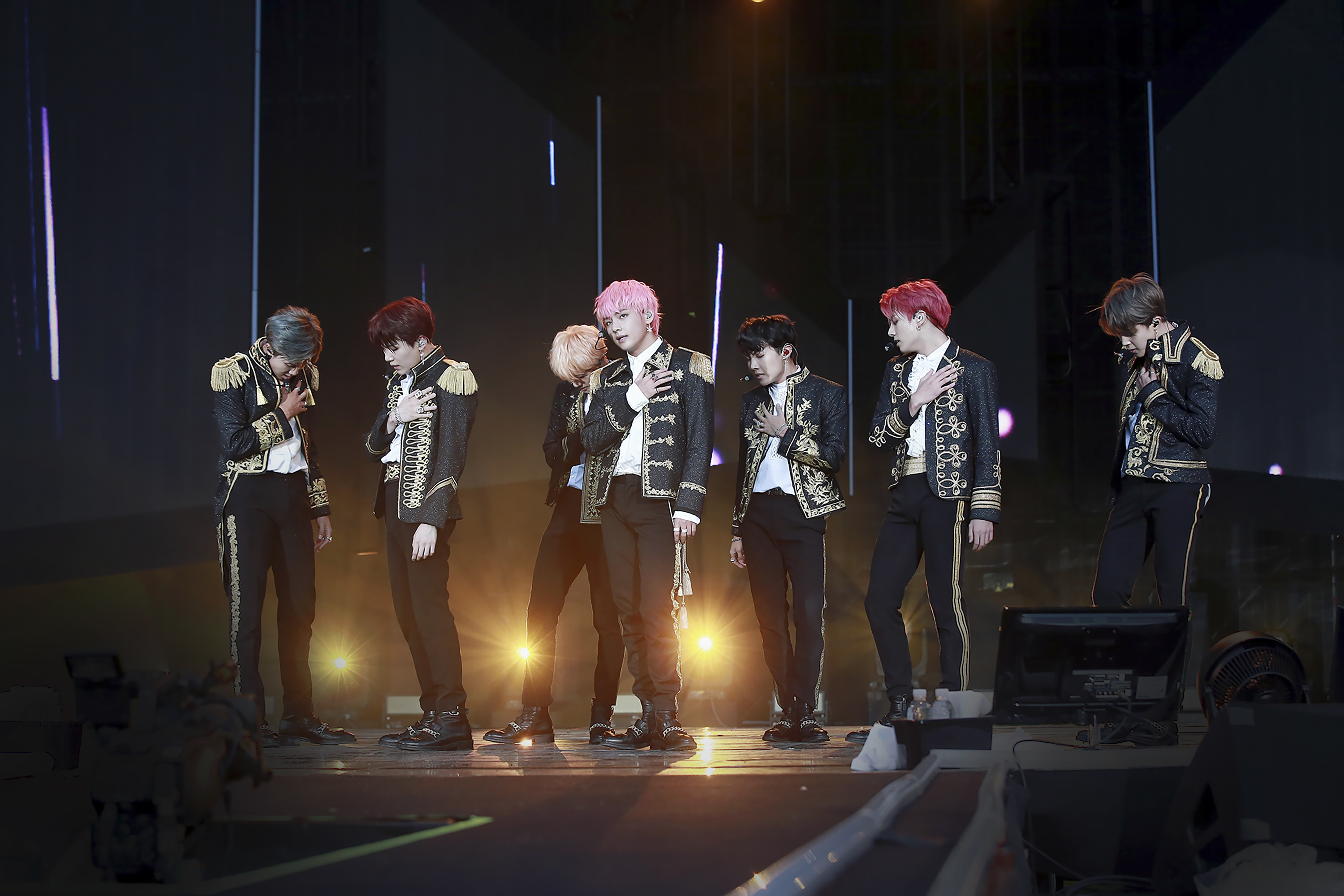 防彈少年團也跟阿米們一起打造出歷代級的「彩虹海」,用4萬5000支阿米棒壯觀裝點會場,除了七彩效果之外,還有超美的「漸層彩虹浪」!隨著不同歌曲,燈海色彩也隨之變幻出不同樣貌,夢幻彩虹海照也被粉絲拍下來瘋傳ING!(現場看一定超美、超感人QQ)