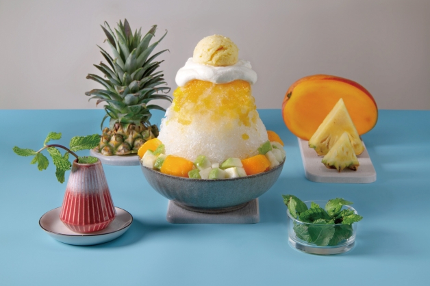 「小玉山」鳳梨芒果香甜絕配,以清爽酸甜的檸檬冰沙為基底,最上層為當季新鮮「金鑽鳳梨切片」,冰沙中藏有香甜芒果,鮮黃甘甜!