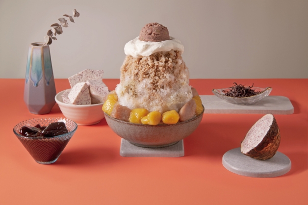 「阿里山」醇厚奶茶混搭台式仙草蜜,山頂選用「舞間茶心」由台18紅玉紅茶為基底,加入煉乳特製成奶茶冰淇淋,山腰則使用「知果堂」特選芋頭、「北灣」地瓜圓和內藏百年老店「員林仙草」的仙草凍,並淋上以「阿薩姆茶粉」製成的奶茶淋醬,吃起來口感綿密香Q之外,更帶有奶茶的香濃和甘醇,絕對是奶茶控和芋圓控必點的冰品!