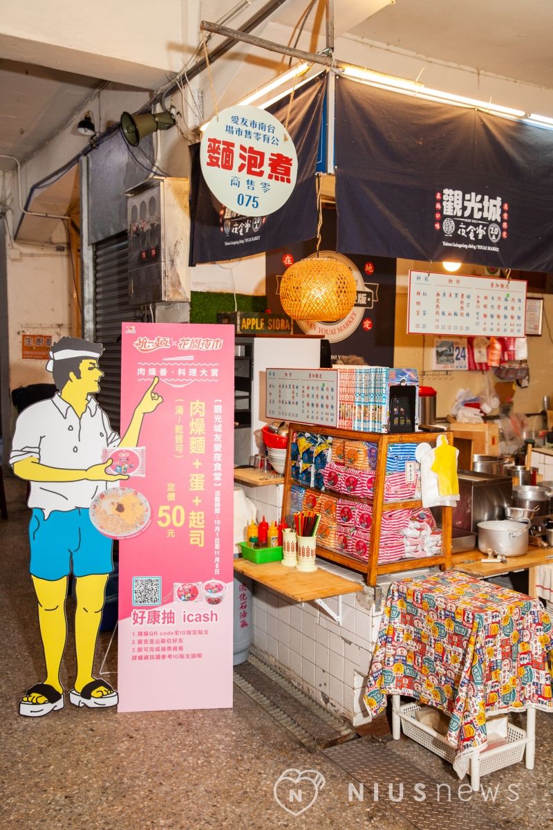 白天時是台南中西區的傳統市場,人群中參雜著叫賣聲,多了份熱鬧,更少不了那濃厚的人情味。到了夜晚更是成為台南人最愛的深夜食堂。尤其這間來自37年老店的「觀光城友愛夜食堂」周圍佈滿古早味擺飾極有懷舊氛圍,幾盞黃燈擺上簡單木桌椅搭著琳瑯滿目的經典泡麵和肉燥迷人香氣,早也餓得無法言語啦!