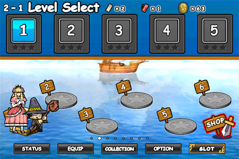 雖然說遊戲的名字叫Princess Punt,但真的在前線戰鬥的還是王子啦!遊戲中雖然是以關卡制來進行戰鬥,但王子的等級是會持續累積的,打完怪物也會獲得升級的獎勵。