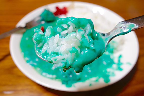 綠色跟藍色兩款,都有添加椰奶的成分,所以比起紅色的更加醇厚、好入口。但是光看這些咖哩的顏色,實在是讓人提不起食慾啊!顏色這麼鮮豔、口味又如此奇特(?),真的會有勇者願意嘗試嗎?