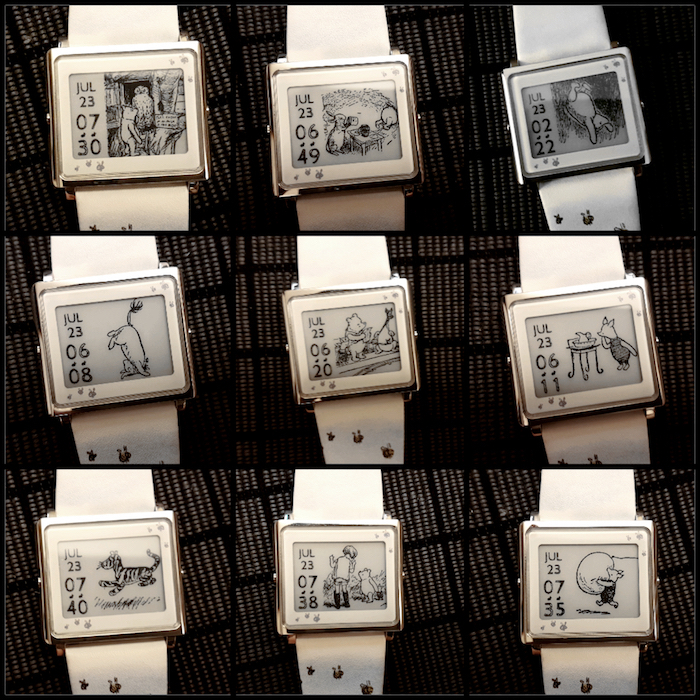 而小熊維尼Smart Canvas,同樣擁有多種錶面動畫樣式之外,或許此款是水彩風格的關係,細看之下,發現Smart Canvas的顯示技術也太好了,清楚的解析度還把動畫手繪的線條呈現得非常細緻;就連錶背,還刻有小熊維尼的圖案和字樣,令人為之驚豔!