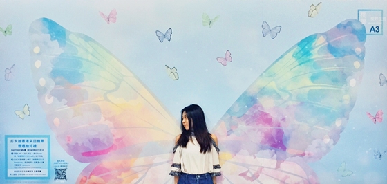 A2三重站以Pantone火焰紅為主題色,近似火焰的濃烈橘紅色,是高調而富有活力的暖調色彩,結合時下韓國最火紅的夏日元素紅鶴,超級可愛!蝴蝶翩翩的A3站以Pantone島嶼天堂藍為主題色,以清新甜美的色調完美開啟夏日的浪漫篇章,純凈如天空的藍色、蝴蝶漫天飛舞,讓人不知不覺中心情都好了起來。