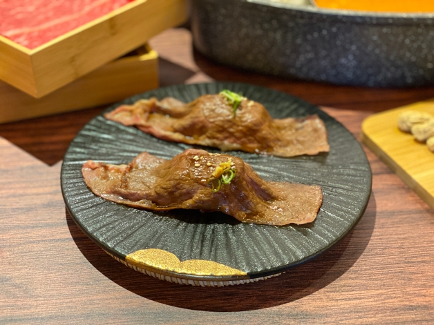 和牛三吃總共有「極上和牛涮煮」、「和牛炙燒壽司」和「極上和牛黑咖哩」三種,和牛炙燒壽司為鎮店之寶,和牛濃郁的油脂經過高溫炙燒與壽司飯結合,入口即化,一貫一貫吃到欲罷不能;極上和牛黑咖哩則是使用極上和牛黑咖哩搭配極上和牛肉片,搭配Q彈米飯,堪稱是咖哩控的最愛!
