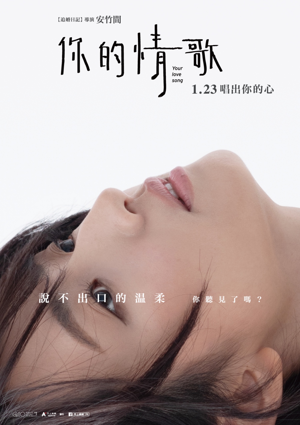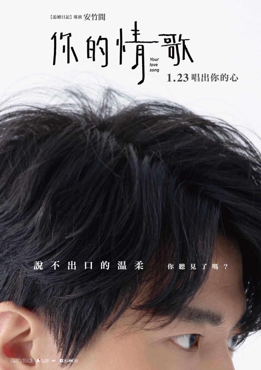 由《追婚日記》導演安竹間執導的新片《你的情歌》將在1月登場,這部浪漫愛情電影也是安竹間睽違4年的新作,走的是溫暖治癒的風格。這除了是他為觀眾出的第二道愛情習題之外,更是希望能向所有仍在為夢想與愛情努力的人們喊話!