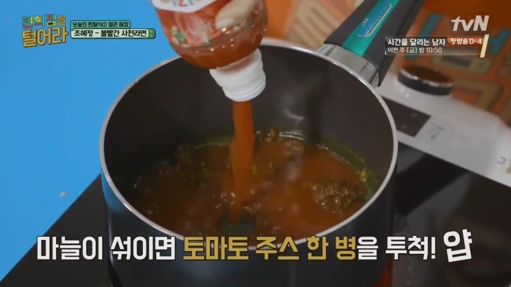 如果你很喜歡吃辣,這項解酒法應該很適合你,常常會想在宿醉的早晨來一碗熱湯對吧?這項「四川辣麵」是利用便利商店就買得到的碗裝辣海鮮麵做的,一開始會先將辣椒醬炒過,提出辣辣的香味。比較特別的是,湯頭跟一般泡麵是用開水不一樣,而是使用番茄汁,愛吃辣的則可以再適量的加入青陽辣椒。
