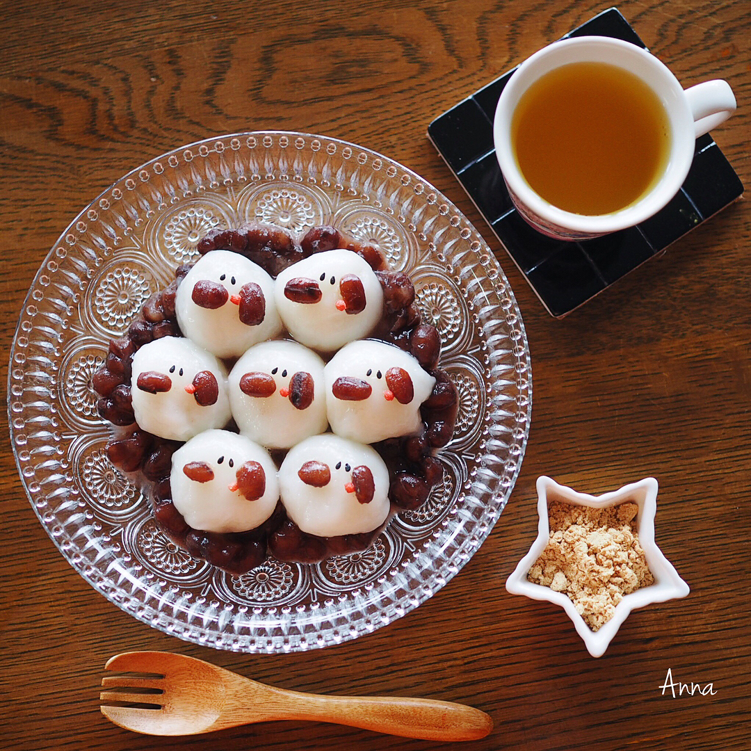 連麻糬都要排得美美的!妝點上紅豆與芝麻做出五官就完成囉~