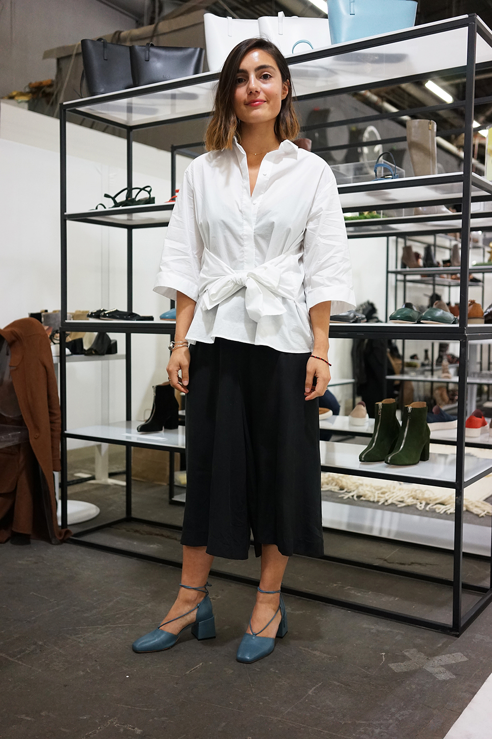 土生土長的洛杉磯鞋履品牌LOQ,設計走著西岸一派悠哉的路線,慵懶、知性、女人味、不過分張牙舞爪,充分表現出令我著迷的effortless chic。每雙鞋子的楦頭以及鞋跟都是接近方形的設計,顏色選擇上多偏向自然的大地色,巧妙地避開過度甜膩的仕女氣息。雖然現場工作人員熱心地跟我講解,產品如何如何的使用小羊皮手做的過程,但,真不好意思,我的注意力早已放在她腳上那雙綁帶的當季新款上。(笑臉)