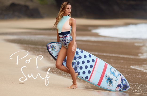 ROXY「POP SURF -海洋藍調」夏威夷衝浪好手MONYCA 詮釋自信又浪漫的海洋藍調「POP SURF - 海洋藍調」系列包含 : 專業比基尼、防磨衣、防寒衣、T-Shirt、飛行外套與配件! 泳衣系列採用XTRA LIFE LYCRA材質延展特性,打造貼身舒適的感受,三角式比基尼及連身裸背式泳裝,除了提升支撐性,獨特的剪裁也能展露出性感曲線,讓各種身形的女孩都能找到專屬於自己的” Bikini Right ” ,恣意散發出獨一無二的自信風采;飛行夾克特別採用LIGHT NEOPRENE輕薄潛水布材質,結合平滑的聚酯纖維觸感輕柔、厚挺不悶熱,提升穿著的舒適度,並以獨特的混搭印花,隨興穿搭出妳的戶外運動時尚!