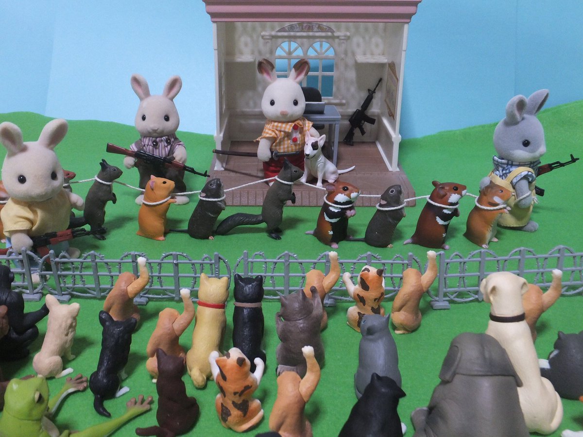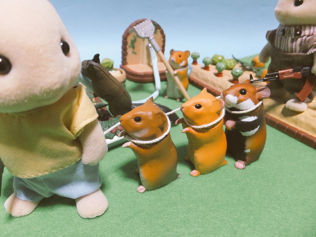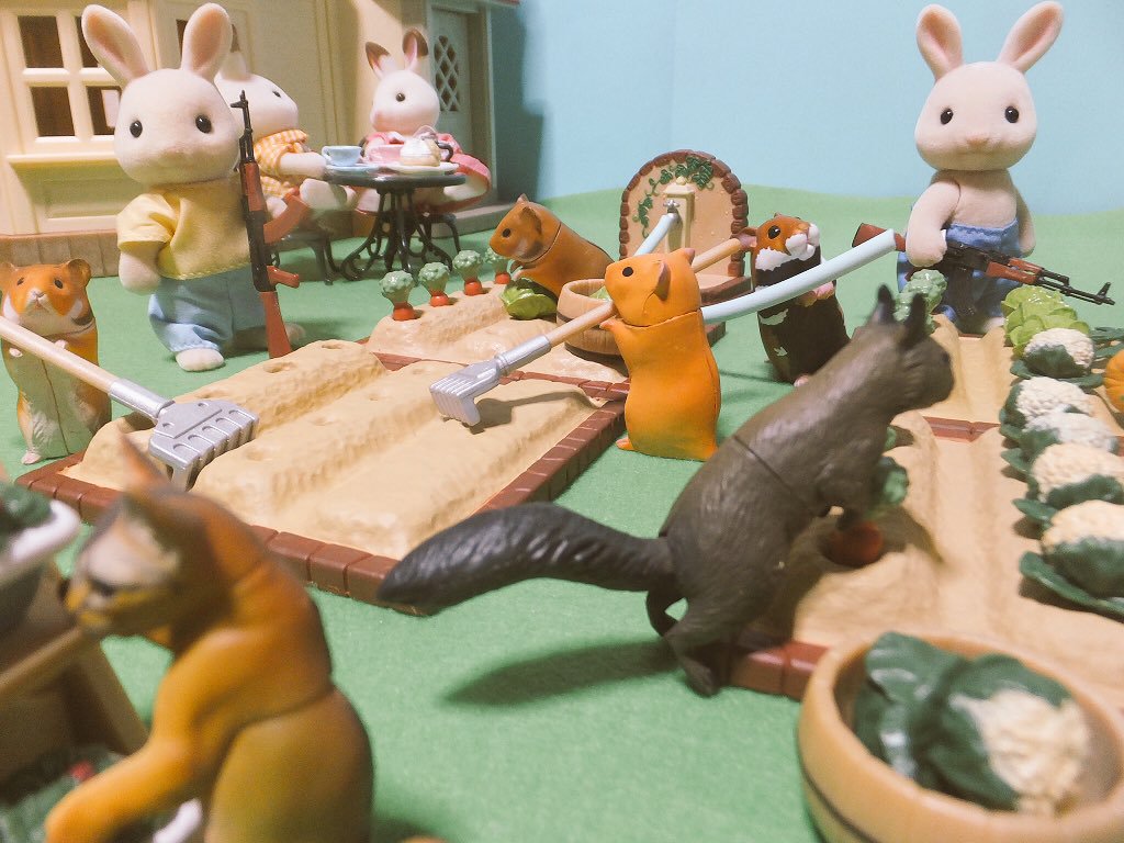 這些可愛的森林家族小動物們拿起槍械、逞兇鬥狠的樣子實在讓人哭笑不得。在推特上還有許多類似的惡搞照片,喜歡這種風格的妞妞可以搜尋#大人のシルバニア欣賞更多網友們的創意喔~
