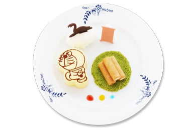 還有這盤哆啦A夢甜點盤的配色也好可愛,而且種類超豐富!有香草冰淇淋還有哆啦A夢造型的起司蛋糕,旁邊做成像蛋捲的是日式燒菓子,看起來真的好好吃啊~