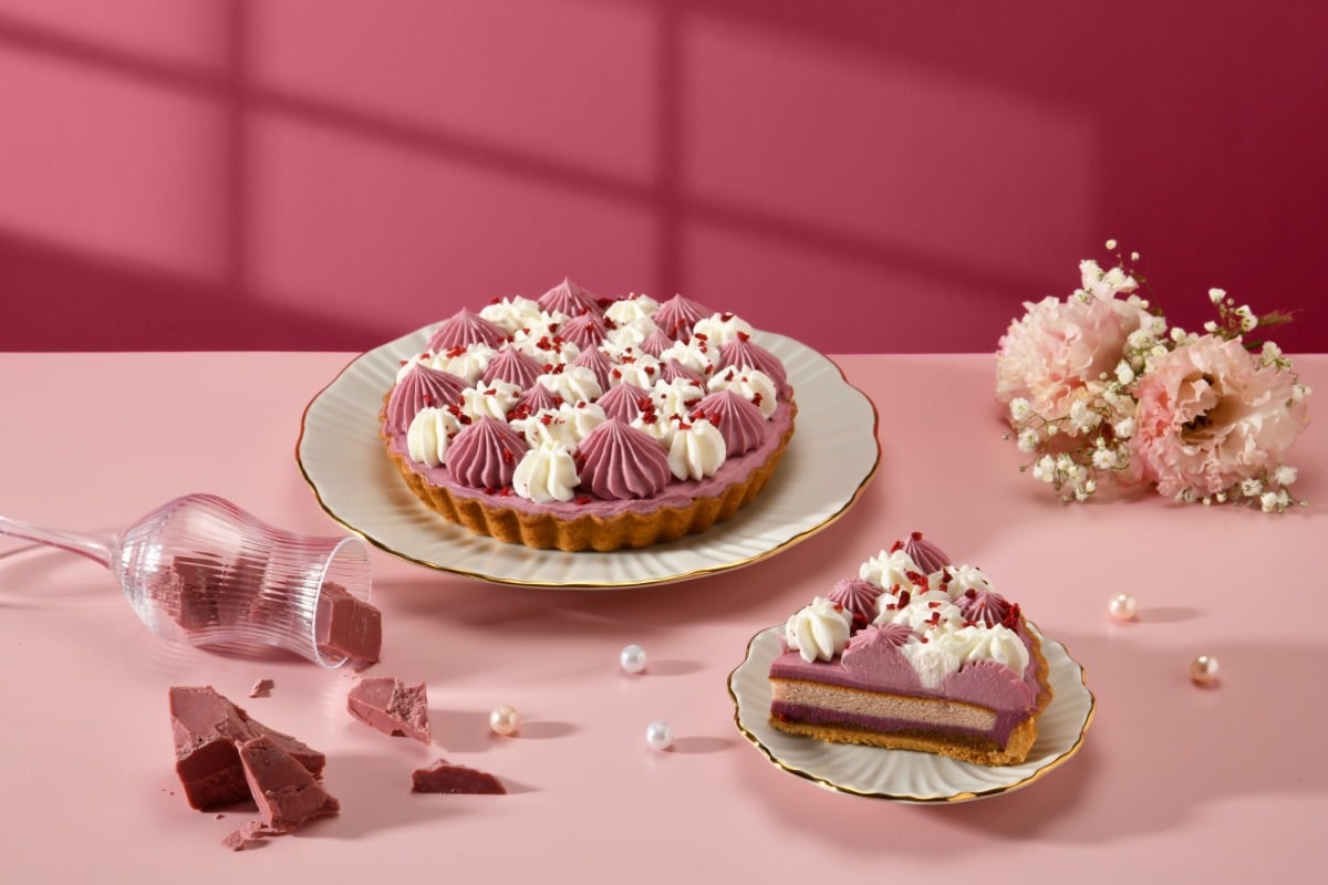 除了生乳捲、蛋糕外,還有塔派可以選擇!結合了北海道奶霜與紅寶石巧克力奶霜,內餡揉合覆盆莓卡士達,搭配酥脆杏仁派皮。底部的手工派塔,以嚴選日本麵粉與法國無鹽發酵奶油細心捏製,厚實酥脆,暗藏酥菠蘿增添咀嚼口感,與泡芙蛋糕、覆盆莓奶霜、卡士達交疊著多層次迷人滋味。