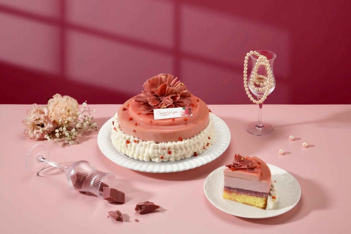 不只好拍,還很好吃!想要挑選圓形蛋糕,推薦這款花綻紅寶石,選用母親節最具代表性的康乃馨花型為雛形,將紅寶石巧克力獨有的粉鑽色澤妝點蛋糕,內餡加入草莓覆盆莓果餡,帶有強烈的莓果氣息與紅寶石巧克力完美共振,剛剛好的酸甜口感,搭配輕盈的草莓慕斯及海綿蛋糕,