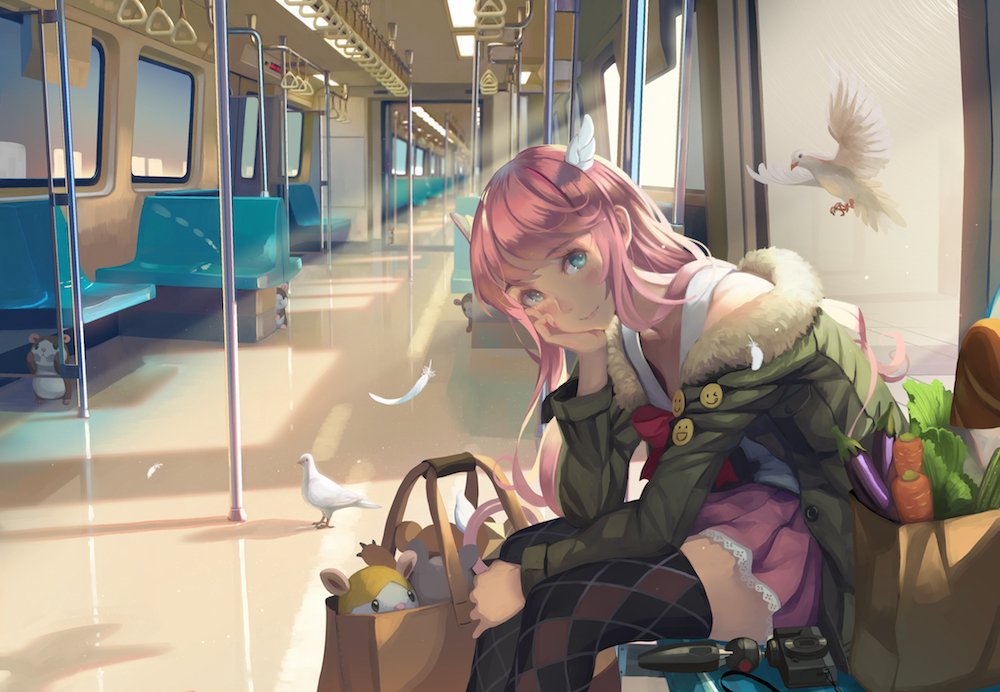 (繪師Vofan / 採買完開箱玩具跟食材,搭捷運準備回家)