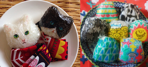 將飯糰用保鮮膜包裹起來,再用保鮮膜專用筆進行彩繪,看起來就跟手作卡通便當一樣精緻呢~