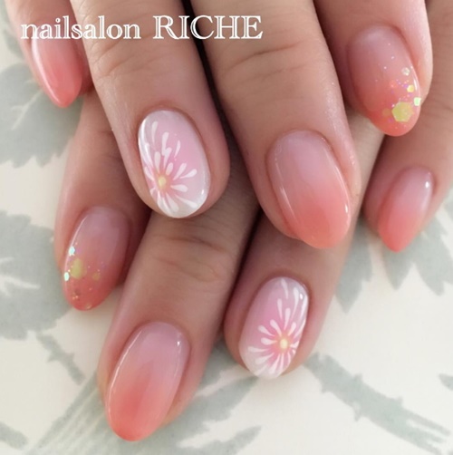 粉色漸層是很適合女孩的款式,白色煙火與粉紅色搭配給人柔和的印象。