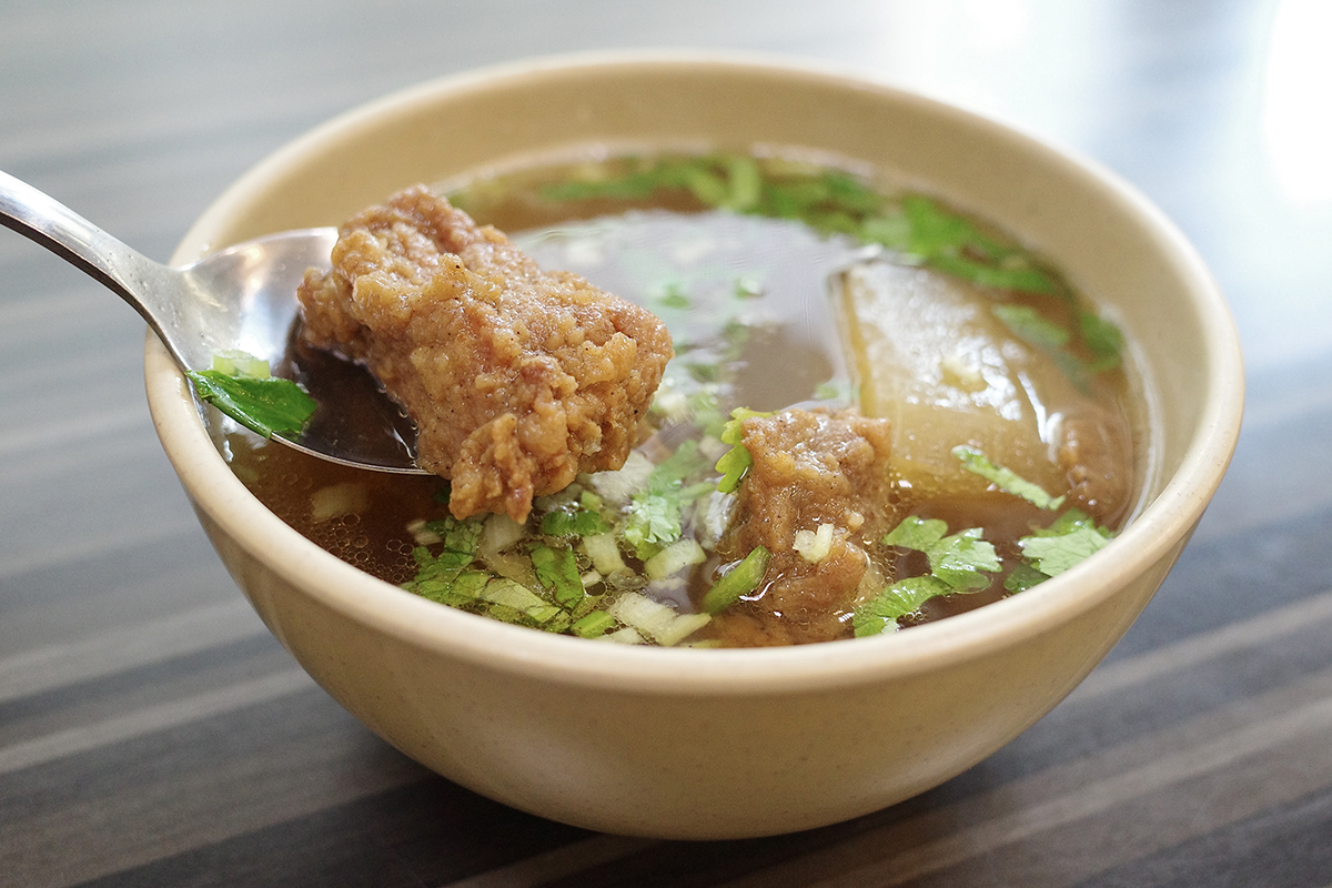 經過醃漬的排骨酥放進油鍋炸至表面金黃,再加入高湯繼續烹調,湯頭在慢火熬煮的過程中,肉汁與白蘿蔔的清甜緩緩結合,「排骨酥湯」之所以誘人就是因為其湯頭鮮甜卻不油膩!若是當做早餐享用,絕對會能喚醒你沈睡的味覺神經。