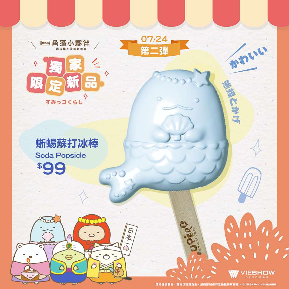 除了白熊之外,冰品還有「蜥蜴蘇打冰棒」可吃。造型同樣還原電影形象,以化身成「美人魚」的蜥蜴為造型,設計相當立體,從魚鱗片到珍珠海星皆完美呈現,夏日消暑必吃。