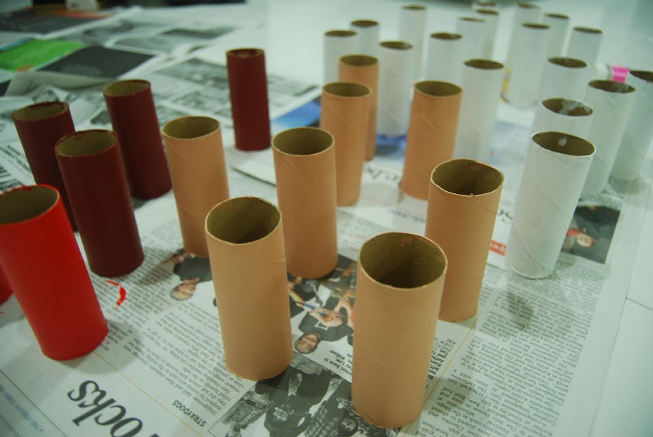 圖片準備完畢之後,將紙捲外部利用水彩或是壓克力顏料塗上不同的顏色。