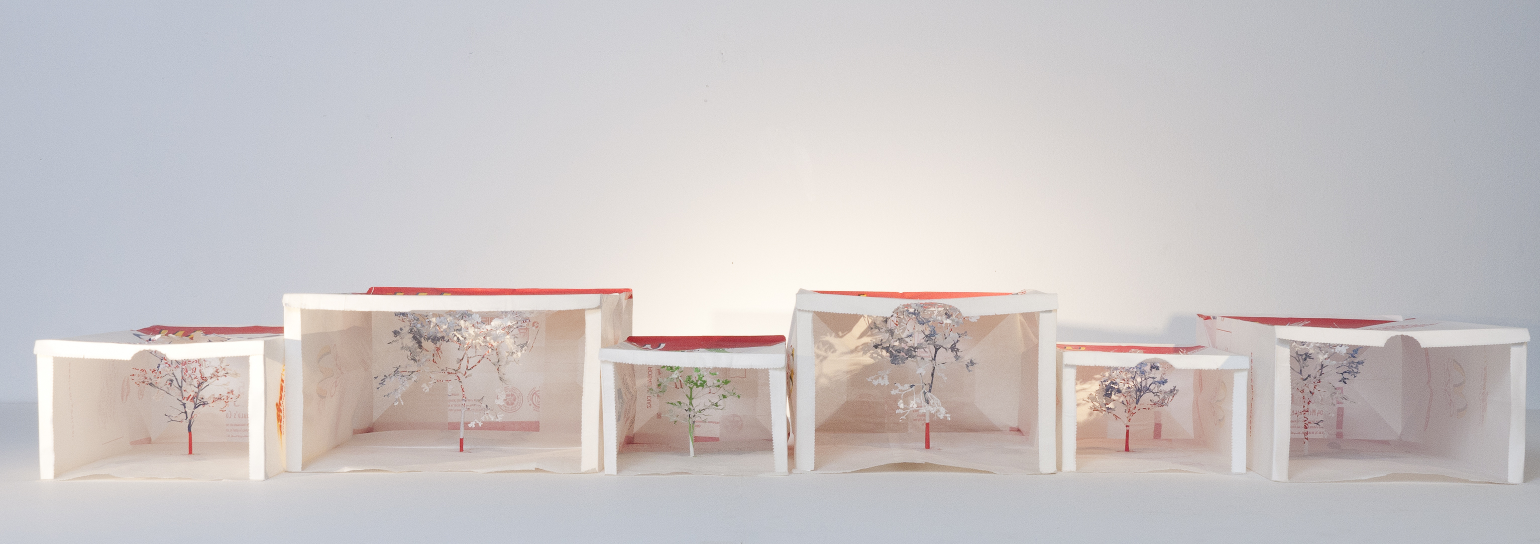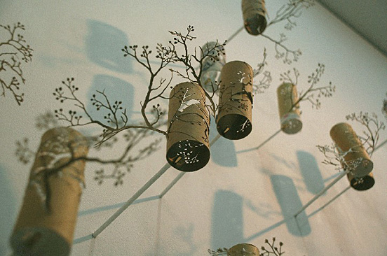 Teruya Yuken除了利用紙捲之外,也利用不要的回收紙袋來創造小樹,這樣一排的擺在一起,小小樹也是可以很有氣勢的呢!