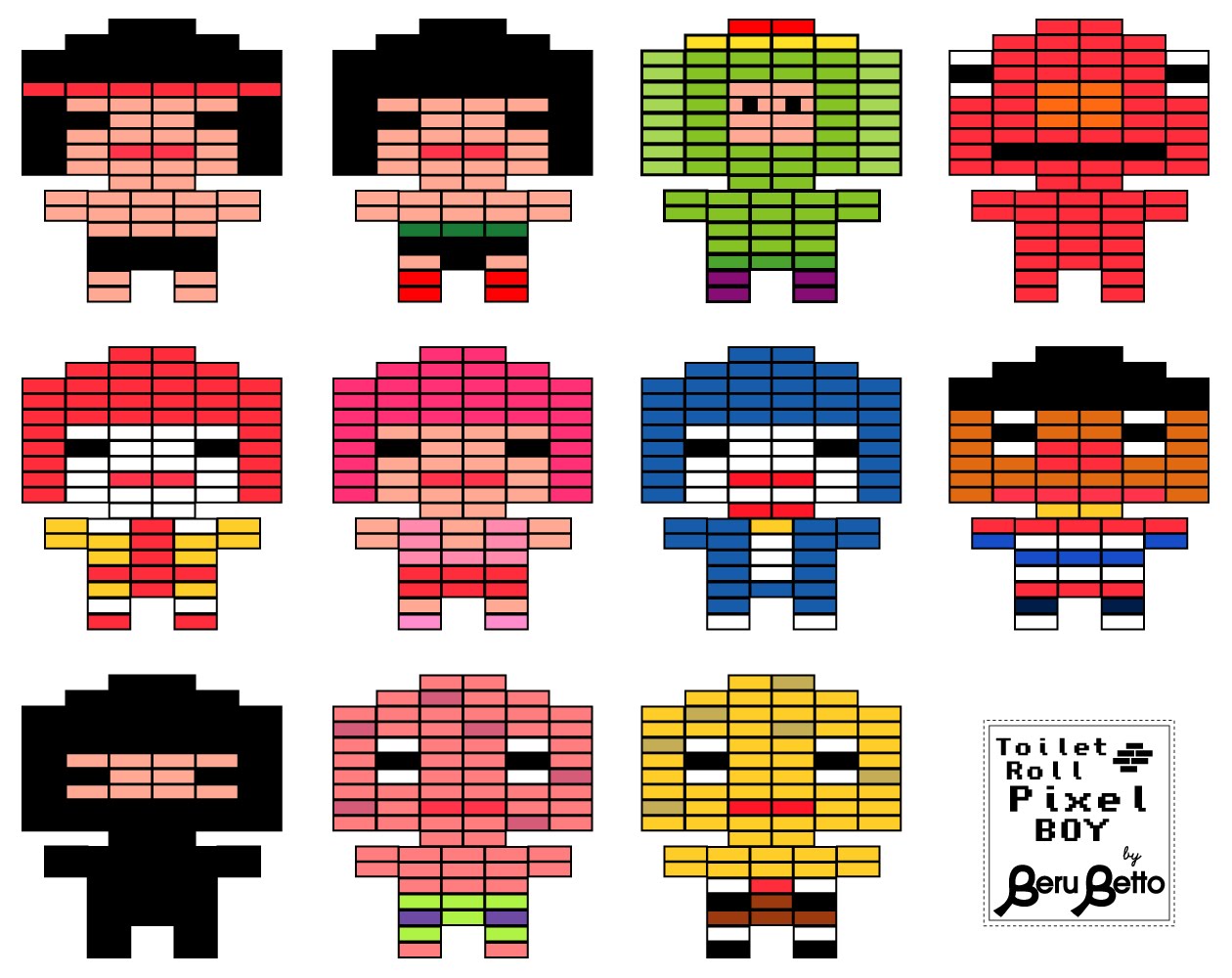 如果懶得自己動手設計圖案,那我們就偷偷參考一下Beru Betto已經設計好的小人偶吧!大家仔細看看你認得出來上面有哪些經典卡通明星嗎?