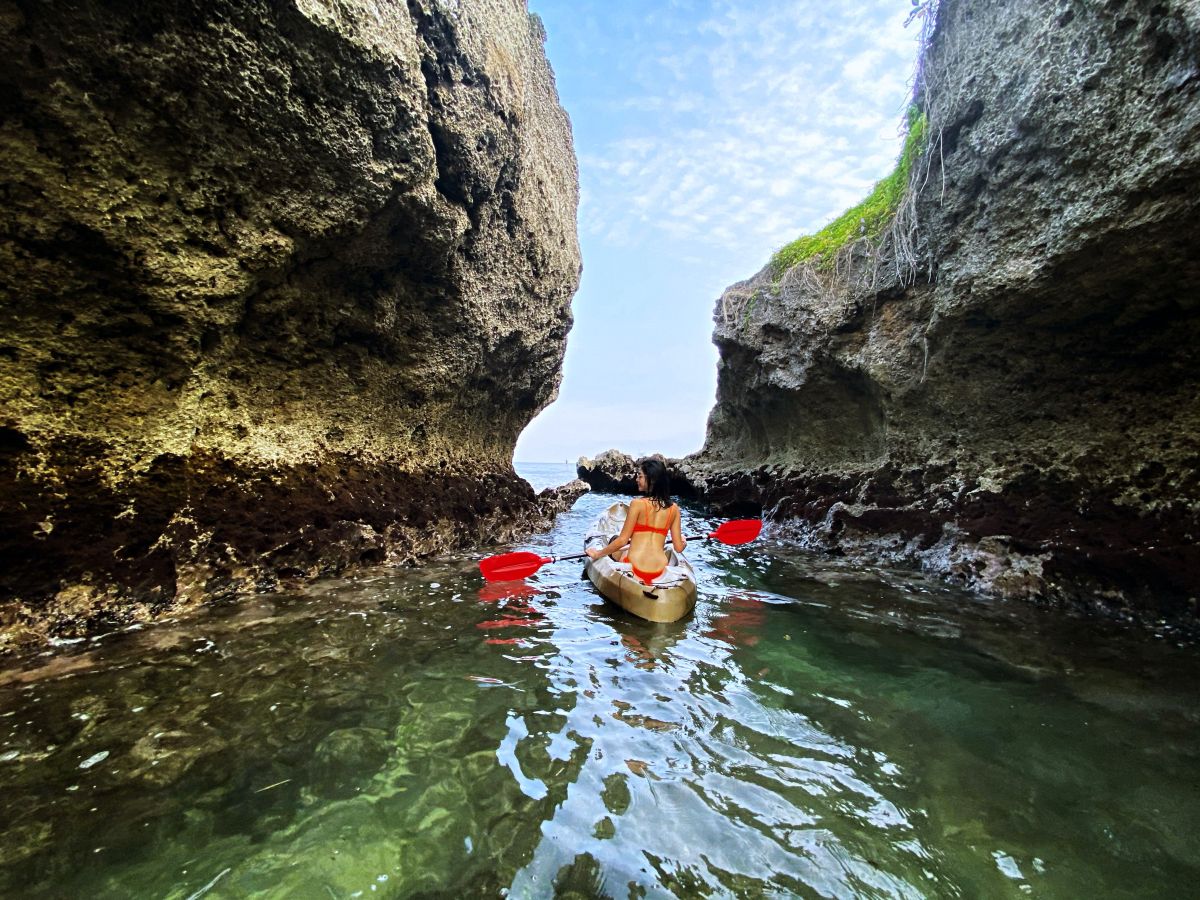 而且小琉球和綠島海龜分佈密集、海水清澈,有「玻璃海」美稱,不想下水也能划著獨木舟徜徉在湛藍海域上,清澈的海水讓人從海面就能欣賞著珊瑚礁美景~運氣好的話,還有機會能遇到海龜浮上水面打招呼呢!