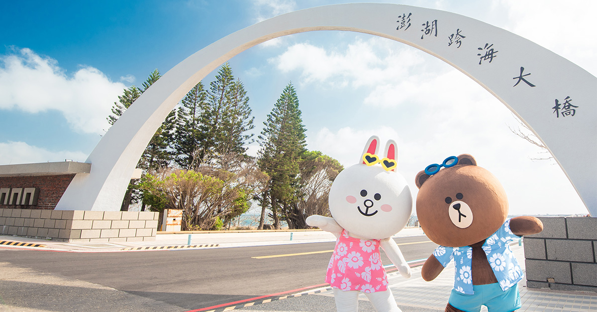 全台民眾引頸期盼的國際旅遊盛宴—2021澎湖國際海上花火節倒數一天即將登場,今年LINE首次與澎湖縣政府合作,超人氣的LINE角色將以無人機燈光煙火秀躍上星空與民眾見面,更結合平台優勢導入多項科技服務,提供用戶更多元便利的旅遊體驗。 近日熊大兔兔被直擊現身澎湖熱門觀光景點,一身菊島風情造型甜蜜約會,踩點觀音亭、跨海大橋、林投貝殼教堂等絕美景點,可愛模樣融化粉絲的心,吸引全台粉絲迫不及待前往朝聖!