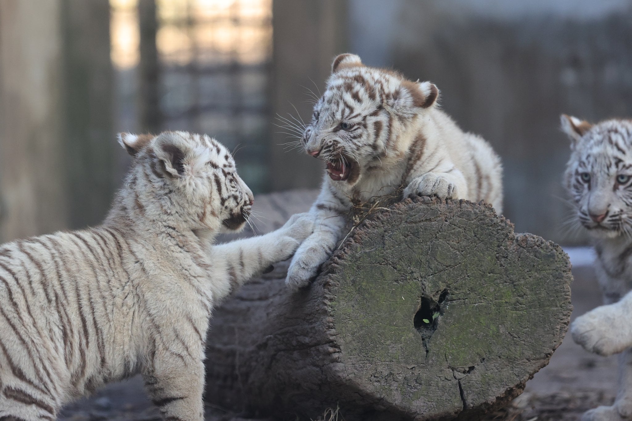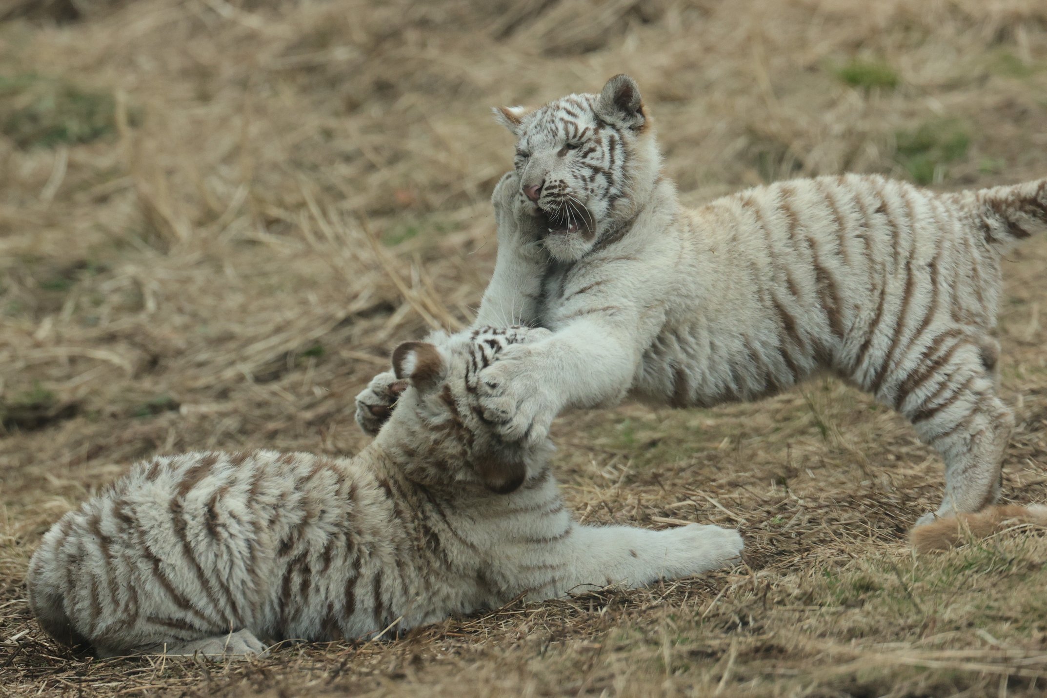 手足之間吵鬧、打架,或是搶喜愛的東西,都是每個家庭中最令父母頭疼的狀況。同樣是幼兒的三隻小白虎當然也少不了彼此「相愛相殺」,在攝影師的捕捉下,小白虎們的打鬧幾乎可以集結成一本「功夫手冊」,有時來個泰山壓頂加咬咬攻,再來個左一拳右一拳,根本誰也不讓誰!(確定你們是親兄弟嗎?)