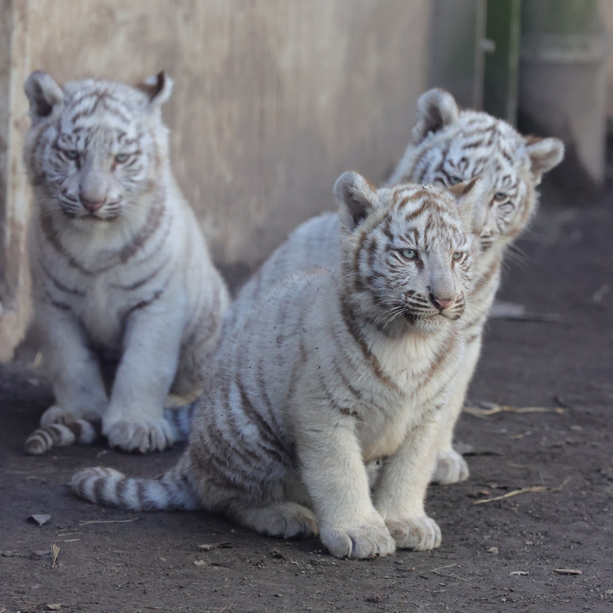 ホワイトタイガーの三つ子達は今日で生後4ヶ月になりました。