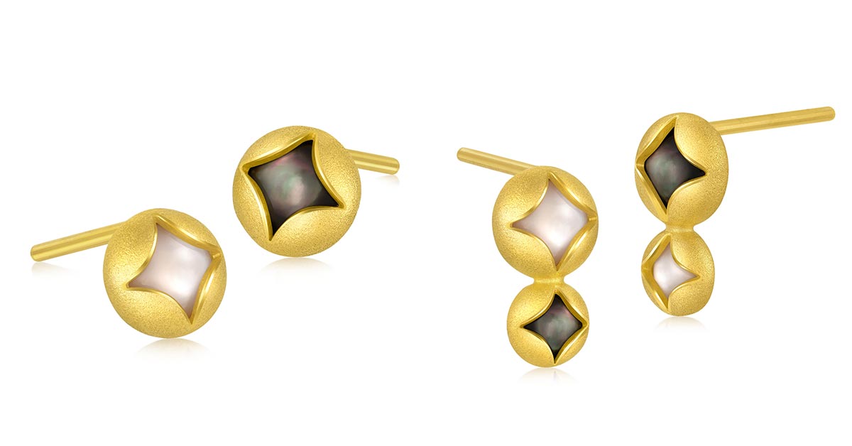 本次一系列的「文化小品」新品耳環、吊墜、手鍊以仿似古代方孔銅錢造型設計而成,有招財進寶的吉祥寓意。造型靈感同樣也來自古代窗花圖案,蘊含中華文化底蘊,更顯古典秀雅巧思。點睛品文化祝福「文化小品」999.9黃金耳環足金部份以半立體設計打造而成,甚具質感,左右耳環分別以黑、白貝母點綴,設計時尚,適合日常佩戴。點睛品文化祝福「文化小品」999.9黃金雙層耳環,左右兩耳的黑白貝母排序互為相反,更添趣味,可增添配戴者的日常搭配性,優雅中不失性格。而點睛品文化祝福「文化小品」999.9黃金三層耳環則改採用靈活環扣方式固定,使得每一顆黃金圓珠在配戴者一舉一動間可以靈活擺動,立體流線設計亦適合喜歡婉約風格的消費者。