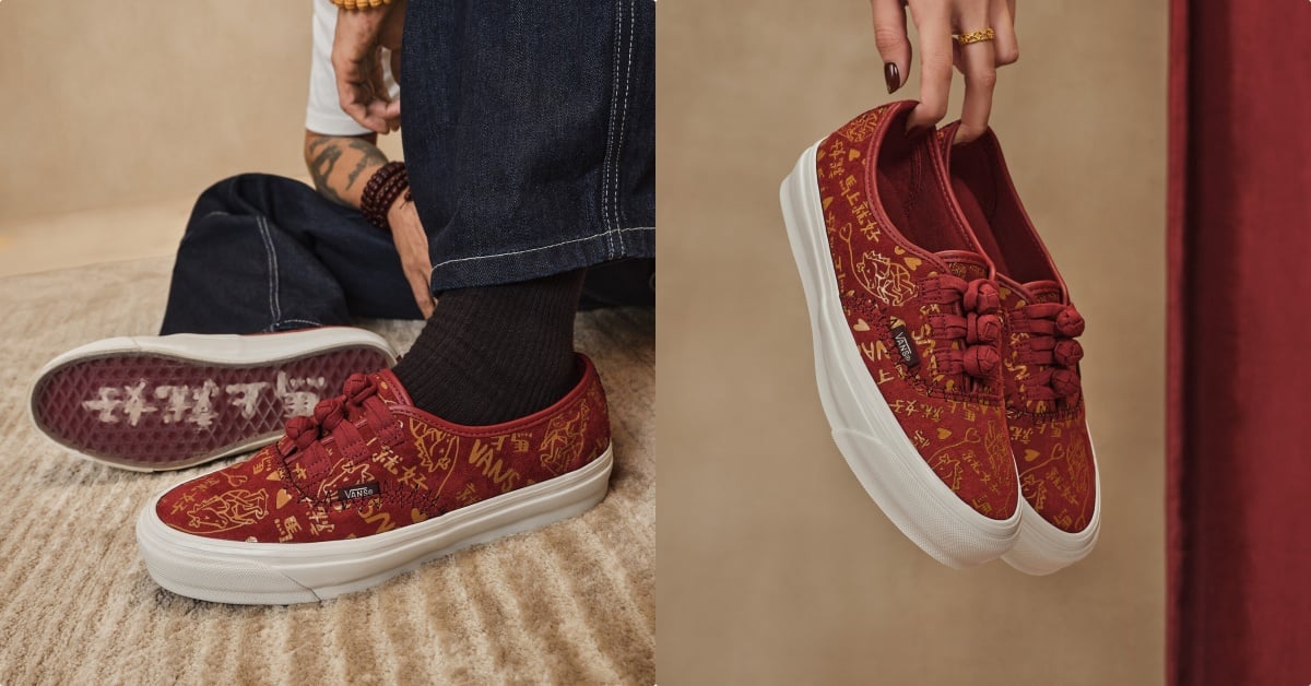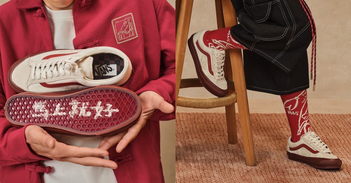 馬年到了…「馬上就好!」Vans與藝術家李柏林 Bolin的跨界聯動鞋款太有梗啦~結合隨性的街頭風格與中式新年傳統,以幽默風趣的設計呈現出來,Premium LX Authentic 44 Knot 聯名鞋款整雙紅色「加上金光閃閃麥色光澤水墨塗鴉線條」有夠喜慶,巧妙結合開運紅色傳統盤扣與透明水晶格紋大底,另一雙奶油白的Premium LX Old Skool 36鞋款,則以開運紅色側邊條紋與大底包邊,形成別具一格的新年撞色,鞋頭與鞋舌壓印馬紋質感,「馬上就好」藏在鞋底、步步有好運。
