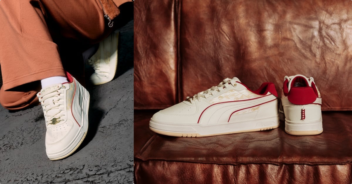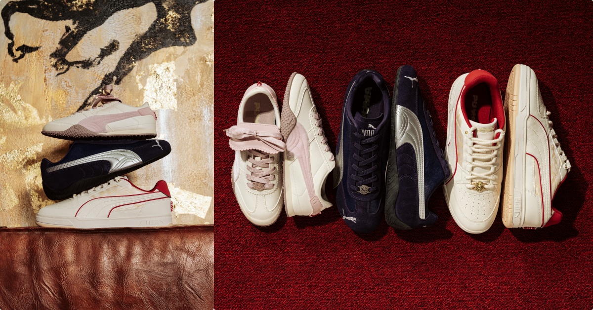 招桃花、招財、招福,跟宇宙下哪個訂單、就穿哪雙!PUMA馬年將3大人氣鞋款變成「圓夢鞋款」(笑),分別結合招桃花櫻花粉「BELLA UT」、招福白「CAVEN」、招財紫「SPEEDCAT」,再加入象徵好運的馬蹄鐵鞋扣點綴於鞋帶、鞋跟處以馬尾結設計收尾、仿馬毛紋理設計,並加入櫻花瓣鞋舌等細節,傳遞「馬到成功」的節慶意象。