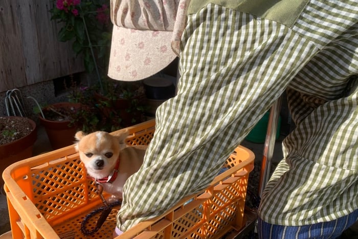 平時 Koko 會被阿嬤放在推車裡,像個乖巧的孫子陪阿嬤去賣菜,雖然 Koko 不能說話、只能靜靜地坐在一旁,但只要一轉頭牠都會在,讓阿嬤的笑容一直停不下來~Koko 的陪伴為阿嬤的生活注入一股鮮活的能量,看著這些照片,妞妞們是不是也感到心都快融化了呢?