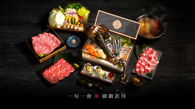 最後加碼八人套餐的「帝王海旬寶盒」,以珍貴珠寶盒概念呈現,有帝王蟹、南非活鮑魚、霸王草蝦、草蝦、北海道生食級干貝、龍膽石斑、現流鮭魚、澎湖小卷、吋蛤、帝王蟹蟹膏等十種食材,象徵十全十美,除了下鍋涮煮外,還會另外在桌邊製作日本傳統的「濱燒美食甲羅燒」,將帝王蟹蟹肉、雞蛋、蟹味噌燒煮後,搭配蛋燒、鱒魚卵、法國麵包一起享用!(每日限量,售價33,900元)