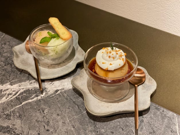 喜歡布丁的可選「昭和焦糖布丁」布丁體加入乳酪,口感更紮實,上面有滿滿鮮奶油和焦糖脆糖,完全就是咖啡廳等級的美味,另外妞編輯也推「青檸梅酒雪酪」,用來收尾剛剛好!