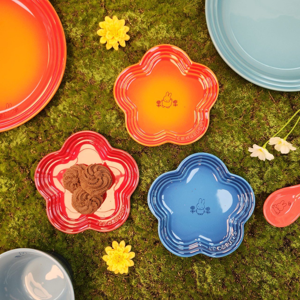 花花餐盤搭配超萌米飛兔,可愛連環爆擊!細緻光滑的花朵造型瓷器淺盤質感滿分,盤中以簡約線條詮釋米飛兔在自家花園玩樂的場景,呈現樸實又俏皮的童趣感,同系列推出紅、橘、藍、綠、黃共五款鮮豔色彩,搭配五款不同動作的米飛兔,一秒擄獲粉絲的少女心~