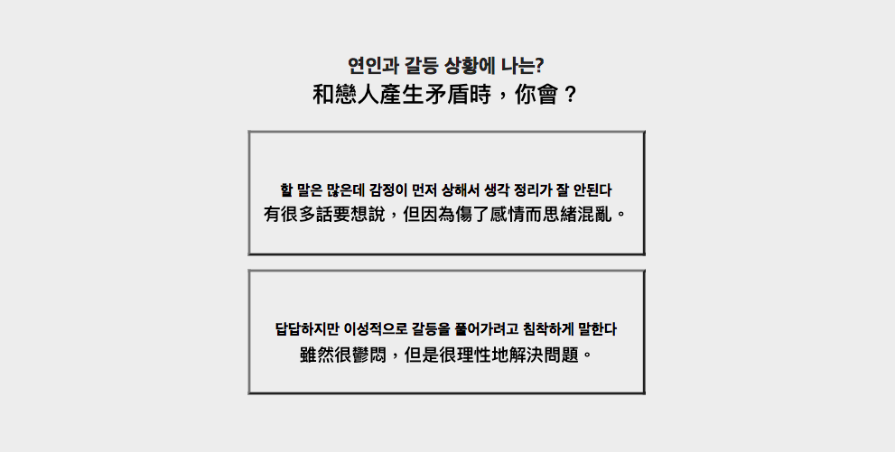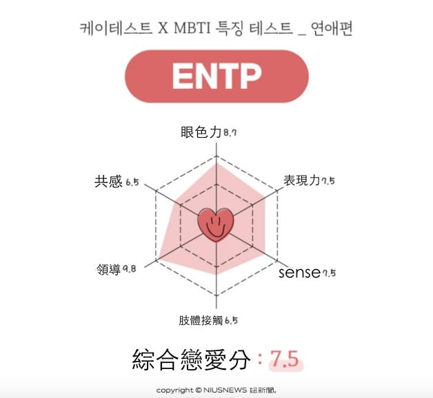 妞妞們還記得近年來全亞洲瘋傳的「MBTI人格特質心理測驗」嗎?分析和結果極其準確,日前韓網又有引起討論度的「愛情版MBTI」,只要12道題就能測出妞妞們的戀愛觀、戀愛分數,戀愛特徵,和你戀愛的注意事項,最終結果還會有「適合和不適合的對象」,現在就來測測看吧!(備註:答案有時候會上下相反,妞妞們可以對一下韓文句子長度)