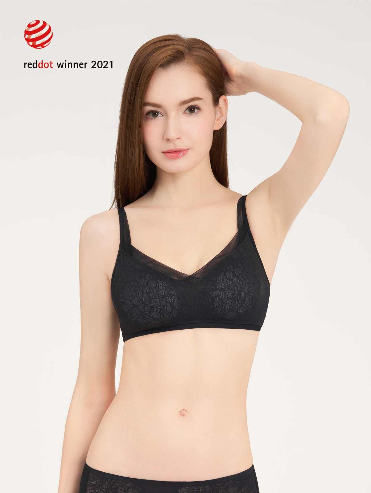 黛安芬Fit Smart智能貼合系列中,因為舒適貼合的設計拿下2021年榮獲德國紅點設計大獎「包覆無鋼圈款」內衣,可以說是這個系列的首選,4D立體彈力罩杯可以因應不同胸型尺寸自動調整貼合胸部,同時加強集中托提胸型,而內衣本身的特殊針織布料及網紗加寬肩帶,是喜歡全面包覆感的妞妞們很不錯的選擇!